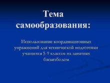 Тема самообразования Использование координационных упражнений для технической подготовки