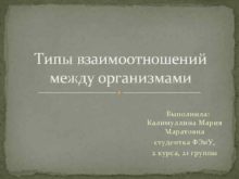 Типы взаимоотношений между организмами Выполнила Калимуллина Мария Маратовна