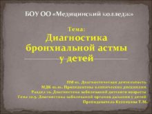 БОУ ОО Медицинский колледж Тема Диагностика бронхиальной астмы
