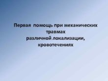 Первая помощь при механических травмах различной локализации кровотечениях