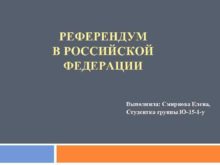 РЕФЕРЕНДУМ В РОССИЙСКОЙ ФЕДЕРАЦИИ Выполнила Смирнова Елена Студентка