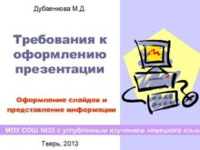Дубаенкова М Д Требования к оформлению презентации Оформление