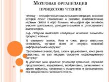 МОЗГОВАЯ ОРГАНИЗАЦИЯ ПРОЦЕССОВ ЧТЕНИЯ Чтение специфическая мыслительная
