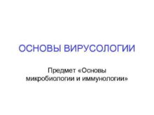 ОСНОВЫ ВИРУСОЛОГИИ Предмет Основы микробиологии и иммунологии