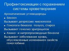 Профинтоксикации с поражением системы кроветворения Ароматические углеводороды n