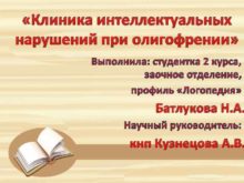 Клиника интеллектуальных нарушений при олигофрении Выполнила студентка