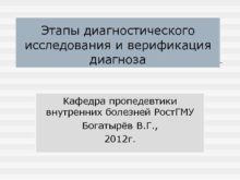 Этапы диагностического исследования и верификация диагноза Кафедра пропедевтики