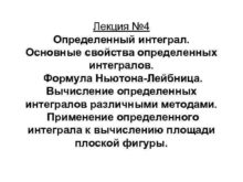 Лекция 4 Определенный интеграл Основные свойства определенных