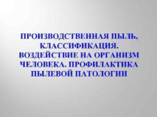 ПРОИЗВОДСТВЕННАЯ ПЫЛЬ КЛАССИФИКАЦИЯ ВОЗДЕЙСТВИЕ НА ОРГАНИЗМ ЧЕЛОВЕКА ПРОФИЛАКТИКА