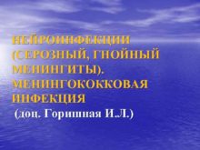 НЕЙРОИНФЕКЦИИ СЕРОЗНЫЙ ГНОЙНЫЙ МЕНИНГИТЫ МЕНИНГОКОККОВАЯ ИНФЕКЦИЯ доц Горишная