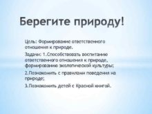 Цель Формирование ответственного отношения к природе Задачи 1