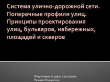 Система улично-дорожной сети Поперечные профили улиц Принципы проектирования