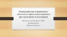 Взаимодействие клинического психолога и врача-психотерапевта при проведении психотерапии