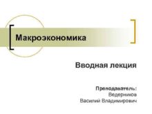 Макроэкономика Вводная лекция Преподаватель Ведерников Василий Владимирович