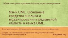 Объектно ориентированный анализ и программирование Язык UML Основные средства