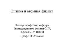 Оптика и атомная физика Лектор профессор кафедры биомедицинской