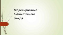 Моделирование библиотечного фонда Моделирование фонда- построение моделей