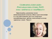 СЕЛИФАНОВА АЛЕКСАНДРА РОМУАЛЬДАСОВНА ГРУППА 421 ТЕМА ПРИЧЕСКА