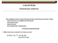 АЛЬДЕГИДЫ Химические свойства Для карбонильных соединений характерны реакции