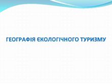 ГЕОГРАФІЯ ЄКОЛОГІЧНОГО ТУРИЗМУ Ми визначаємо екологічний туризм
