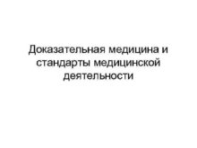 Доказательная медицина и стандарты медицинской деятельности ДМ