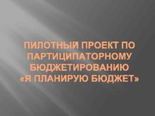 ПИЛОТНЫЙ ПРОЕКТ ПО ПАРТИЦИПАТОРНОМУ БЮДЖЕТИРОВАНИЮ Я ПЛАНИРУЮ БЮДЖЕТ