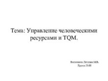 Тема Управление человеческими ресурсами и TQM Выполнила Леготина
