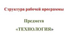 Структура рабочей программы Предмета ТЕХНОЛОГИЯ Структура программы