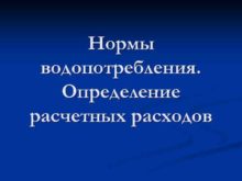Нормы водопотребления Определение расчетных расходов Норма водопотребления
