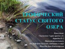 ТРОФИЧЕСКИЙ СТАТУС СВЯТОГО ОЗЕРА Выполнила Студентка 5 курса
