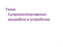 Тема Супрамолекулярные ансамбли и устройства 1 Макроскопические