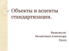 Объекты и аспекты стандартизации Выполнила Михайленко Александра Б