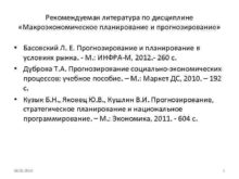 Рекомендуемая литература по дисциплине Макроэкономическое планирование и прогнозирование