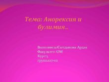 Тема Анорексия и булимия Выполнила Сытдыкова Ардак Факультет