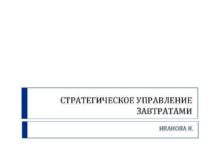 СТРАТЕГИЧЕСКОЕ УПРАВЛЕНИЕ ЗАВТРАТАМИ ИВАНОВА Н Стратегическое управление