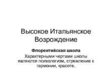 Высокое Итальянское Возрождение Флорентийская школа Характерными чертами школы