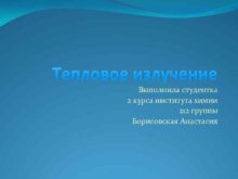 Тепловое излучение Выполнила студентка 2 курса института химии