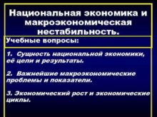 Национальная экономика и макроэкономическая нестабильность Учебные вопросы 1