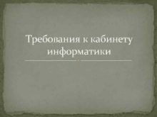 Требования к кабинету информатики Санитарногигиенические требования Помещения