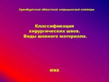 Оренбургский областной медицинский колледж Классификация хирургических швов Виды