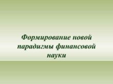 Формирование новой парадигмы финансовой науки Причины возникновения