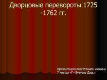 Дворцовые перевороты 1725 -1762 гг Презентацию подготовила ученица