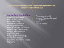 Проектирование участка по ремонту трансмиссии автомобиля Honda