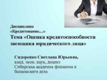 Дисциплина Кредитование Тема Оценка кредитоспособности заемщика юридического лица