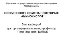 Кировская государственная медицинская академия Кафедра химии ОСОБЕННОСТИ ОБМЕНА