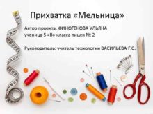 Прихватка Мельница Автор проекта ФИНОГЕНОВА УЛЬЯНА ученица 5
