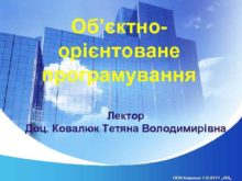 Об єктноорієнтоване програмування Лектор Доц Ковалюк Тетяна Володимирівна ООП