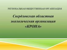 РЕГИОНАЛЬНАЯ ОБЩЕСТВЕННАЯ ОРГАНИЗАЦИЯ Свердловская областная экологическая организация КРОНА