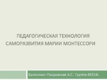 ПЕДАГОГИЧЕСКАЯ ТЕХНОЛОГИЯ САМОРАЗВИТИЯ МАРИИ МОНТЕССОРИ Выполнил Покровская