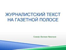 ЖУРНАЛИСТСКИЙ ТЕКСТ НА ГАЗЕТНОЙ ПОЛОСЕ Спикер Евгения Никитина